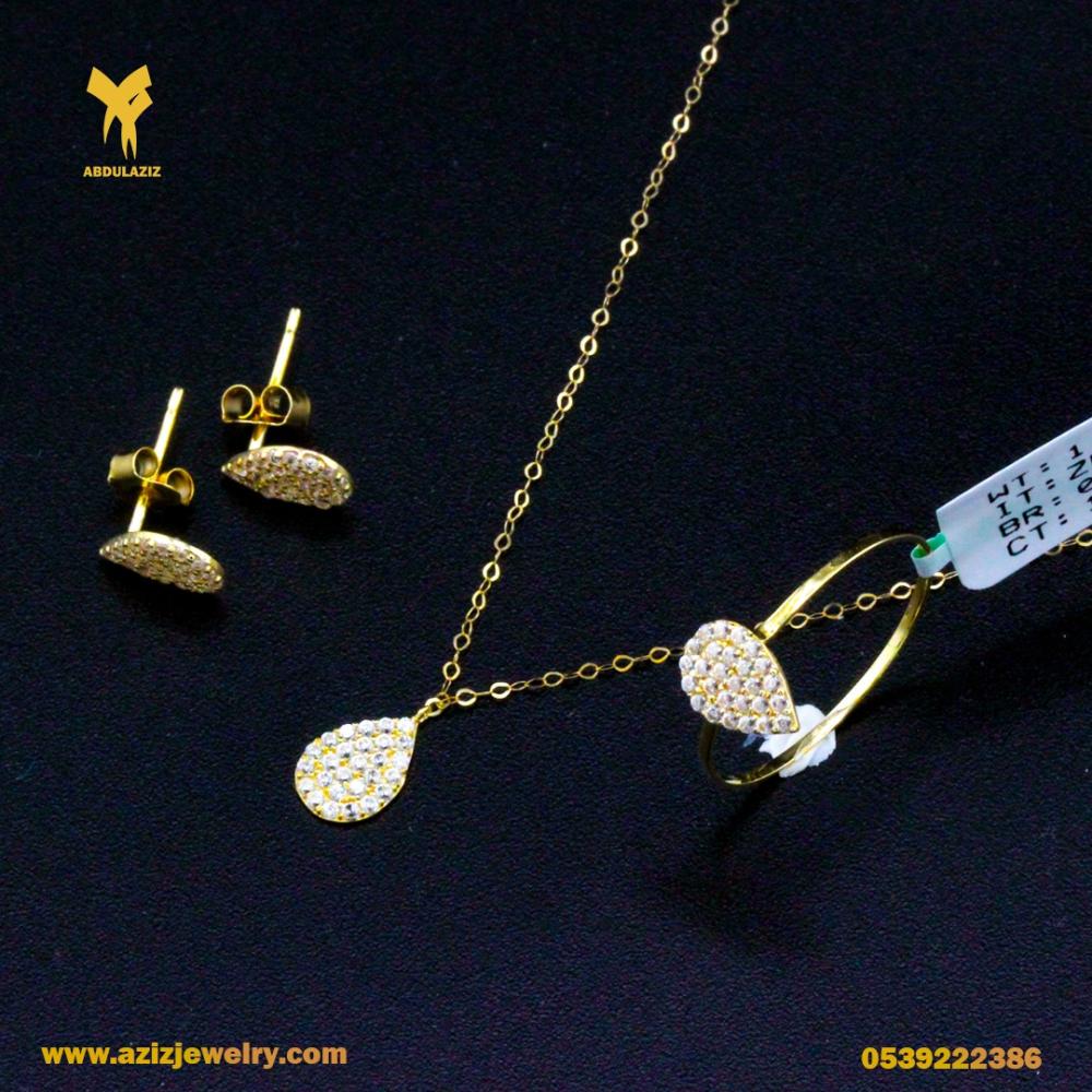 نصف طقم ذهب أصفر عيار 18بتصميم أنيق يجمع بين الفخامة والتفاصيل الدقيقة. يتكون الطقم من عقد متألق، ، وخاتم ساحر، وحلق بديع. هذه المجموعة المتناغمة ، لتضيف لمسة من السحر والأناقة الفريدة على إطلالتك.✨