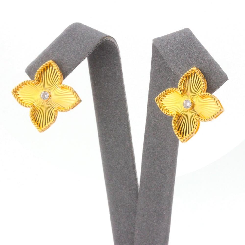 حلق من الذهب الأصفر عيار 21 ، بتصميم هندسي متقن الصنع. يجمع بين الجاذبية العصرية والفخامة التقليدية ليضفي لمسة من الرقي والتميز على إطلالتك.✨