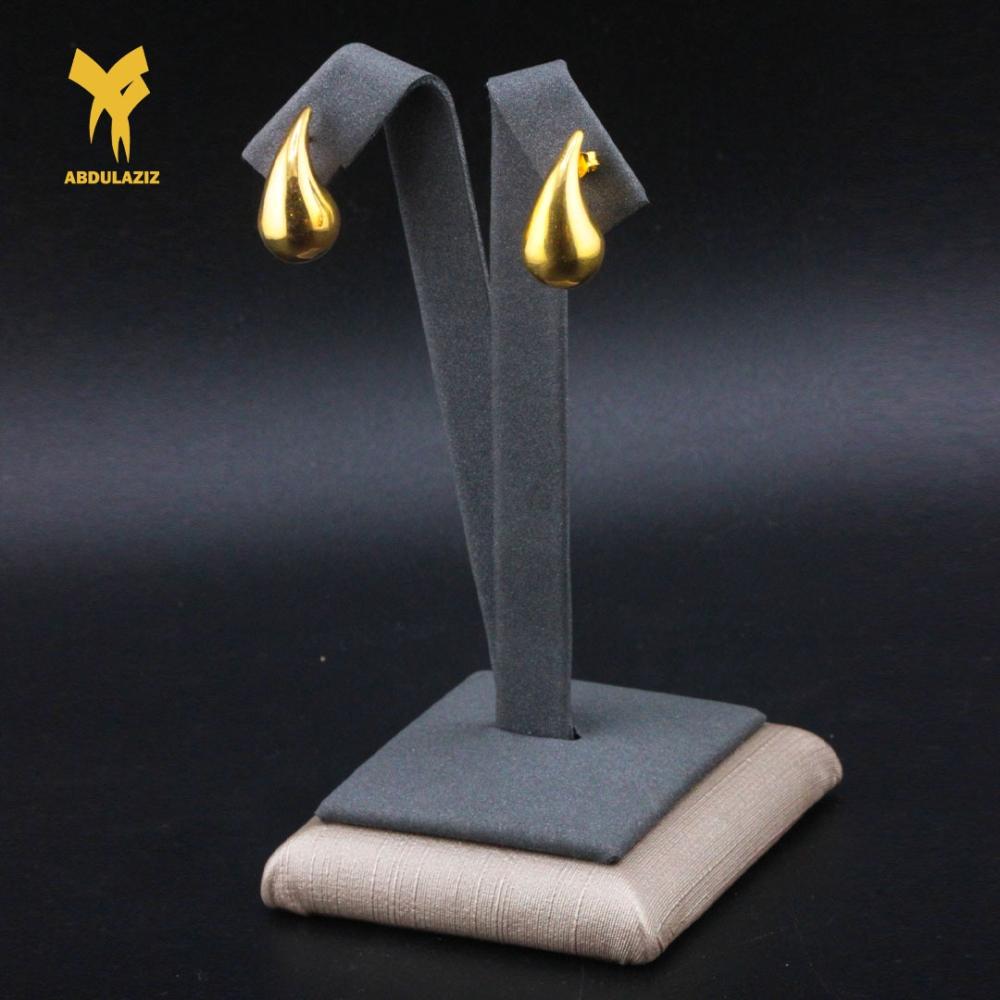 حلق من الذهب الأصفر عيار 21 ، بتصميم هندسي متقن الصنع. يجمع بين الجاذبية العصرية والفخامة التقليدية ليضفي لمسة من الرقي والتميز على إطلالتك.✨