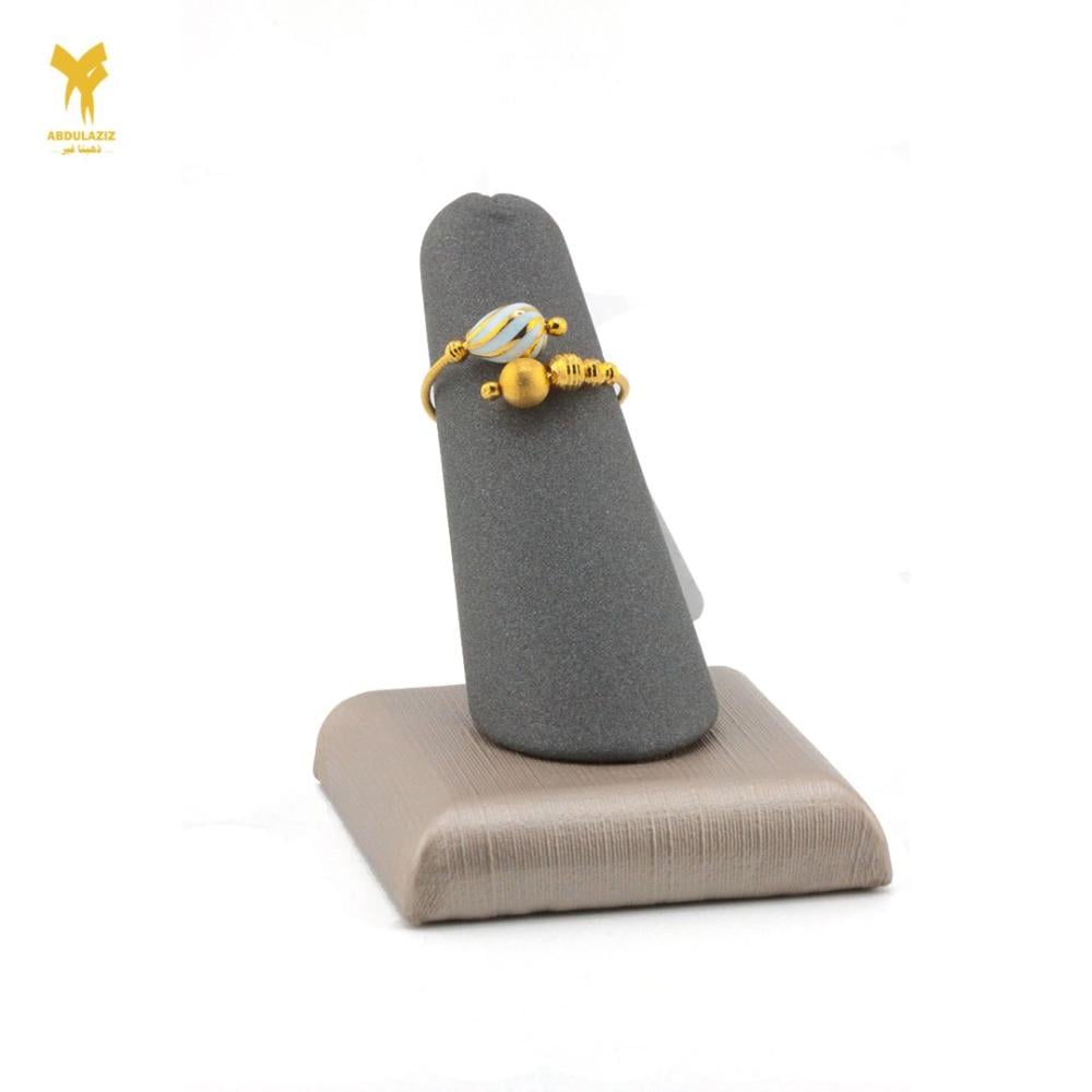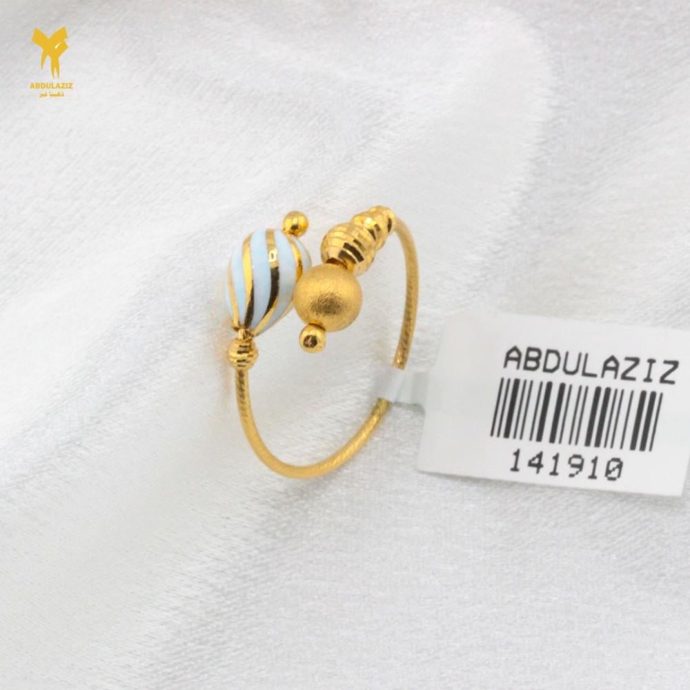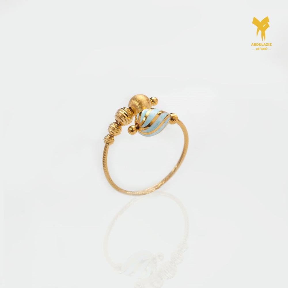 خاتم من الذهب الأصفر عيار 21 بتصميم هندي بسيط وجميل، مطعّم بلون سماوي يعكس ألوان الطبيعة الهادئة. يجمع هذا التصميم بين الرقة والفخامة، ليضفي لمسة من الجمال النقي والأناقة الخالدة على كل إطلالة.