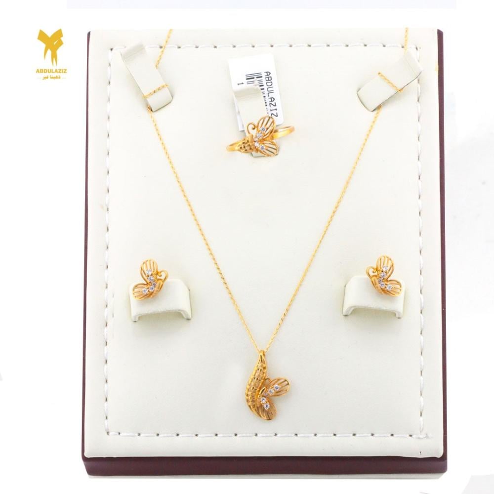 مصنوع من ذهب عيار 21 قيراط، يتميز هذا الطقم بلمعانه الساحر الذي يأسر الأنظار. الذهب، بصفته معدنًا ثمينًا، يضفي على إطلالتك لمسة من الفخامة والرقي.