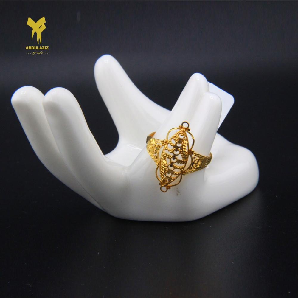 خاتم من الذهب الأصفر عيار 21، بتصميم هندسي متقن الصنع. يجمع بين الجاذبية العصرية والفخامة التقليدية ليضفي لمسة من الرقي والتميز على إطلالتك.✨