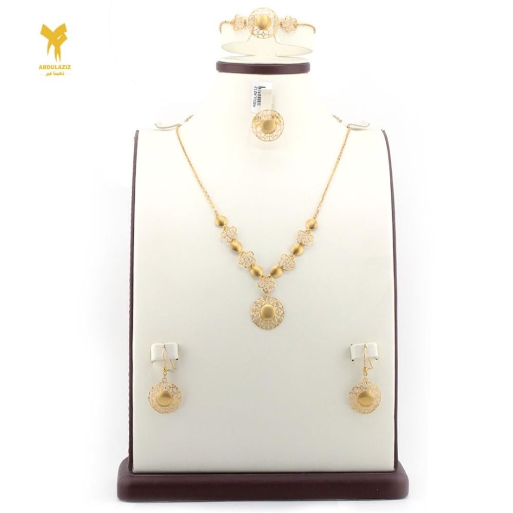 اكتشفي سحر الذهب الخالص مع طقم الذهب عيار 21 من عبدالعزيز للمجوهرات والألماس، تحفة فنية تزيدكِ تألقًا وسحرًا في كل مناسبة.