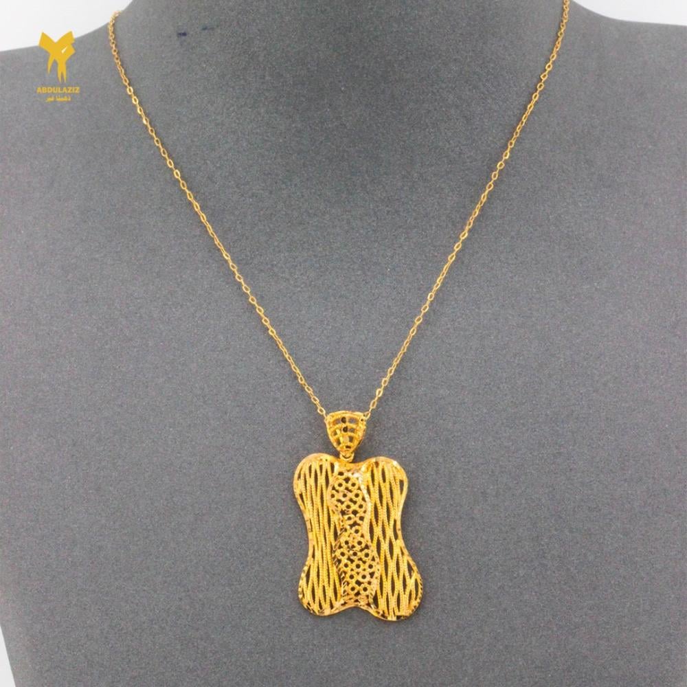 تعليقة مع سلسال من الذهب الأصفر عيار 21، بتصميم هندسي يتوسطه تصميم للبيت الحرام أنيق يتناغم مع سلسال متقن الصنع. يجمع بين الجاذبية العصرية والفخامة التقليدية ليضفي لمسة من الرقي والتميز على إطلالتك.✨